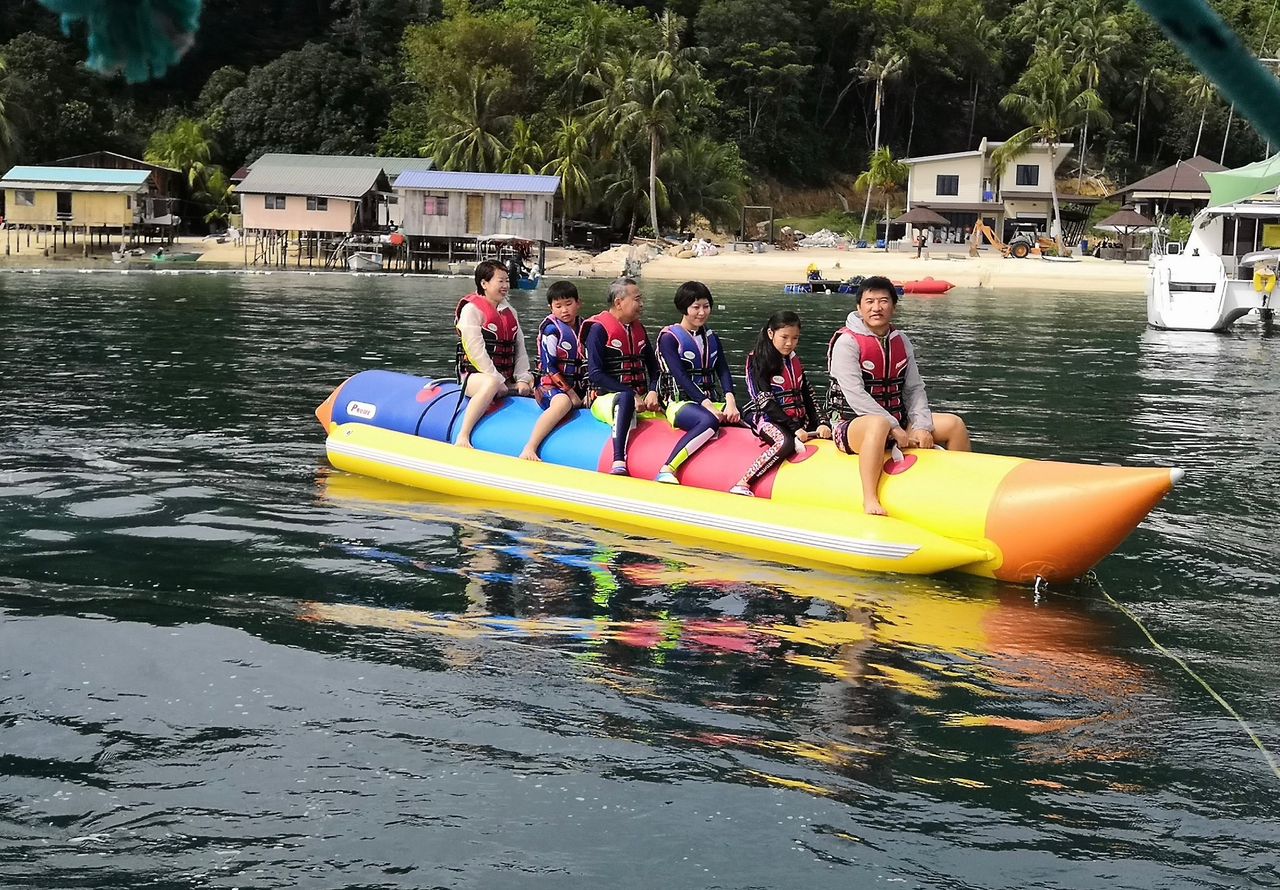 13:00 您可自由的在岛上感受宁静翠绿的环境或自费参加拖曳伞、飞鱼、香蕉船、水上摩托车等刺激水上活动