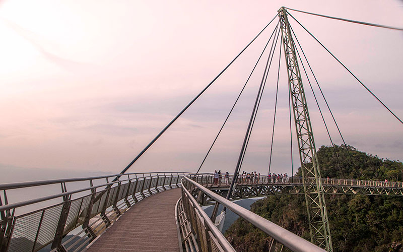 在酒店享用早餐后,前往东方村 Oriental Village, 抵达东方村可到处参观 3D 艺术馆( 3D Art Museum Langkawi ),乘坐着缆车到最高山顶踏上兰卡威最出名的天空之桥 (Sky Bridge) , 这座全长 125 公尺的天空之 桥,中间部分安装了透明的玻璃地板。桥形呈圆弧状,主体由钢材料构成。特别让人觉得惊讶的是,这么 个又大又重的"钢架"居然只用了一根支柱来支撑,支柱高 87 米,被固定在山腰,然后再由 8 根钢缆牵引, 整个桥就这样最终被"吊"在了海拔 687 米的高空,连接着两个山头,这肯定也是它取名天空之桥 (Langkawi Sky Bridge)的缘由。中午在东方村 Oriental Village 享用午餐 (自费),午餐后,前往首相博物 馆 ( Perdana Gallery ), 飞禽公园 ( Wildlife Park ), 巨鹰广场 ( Eagle Square ), 珍南海滩 ( Pantai Cenang ),最后 前往兰卡威瓜镇闲逛 ( Kuah Town ) 免税店. 结束今日的行程,返回您入宿的酒店。( 早餐 ) -