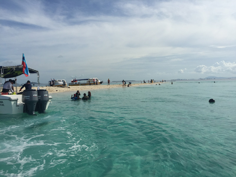 曼达布安岛的鱼群很多,浮潜就可看到各色小鱼,五彩宾纷的绚丽海底景色,是最适合浮潜的岛。海水是碧绿 色的像翡翠,海底大片大片的珊瑚礁,像草原一样,特别壮阔,特别平静,还会遇到海龟和您嬉戏同游,若无潮汐 影响,您也能上岛拍照和环岛漫步。