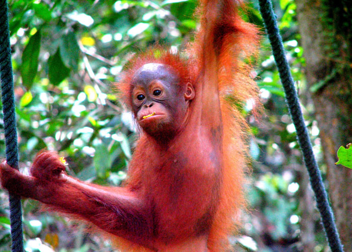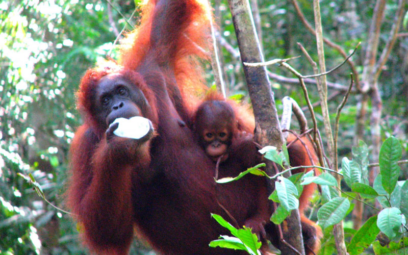 人猿(红毛猩猩)属灵长类,与猴子最大不同的地方就是没有尾巴与人类十分相近,生育策略都是採取子代数目少,但抚养期间很长的策略,大概要六到七岁左右才能渐渐独立生活通常是雌性负责照顾後代,雄性大多独立行动。因为生育期如此漫长,整体的生育率显得很低,再加上栖息地被破坏,猎人的捕捉,许多(红毛猩猩)人猿面临濒临绝种的危险。