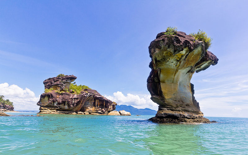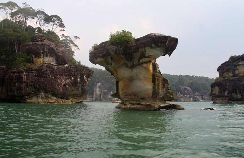 巴哥国家公园 ( Bako National Park ) 是砂拉越州历史最悠久的国家公园,设立于1957年,占地面积27平方公里,距离古晋市区37公里。公园位于南中国海之滨的Muara Tebas半岛上,石岬和海滩以及环绕着的沙岩高地生长着极其丰富多彩的野生动植物,地貌复杂多样而又景色壮丽。 最为难得的是,这里有一处纯朴宜人的海滩,能看到色彩鲜艳而壮观的砂岩峭壁和罕见的岩石海岸,同时也是窥看长鼻猴的最佳地点之一。