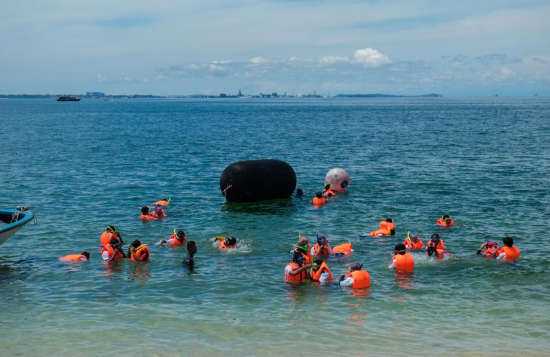 集合在酒店大厅并由导游接送前往码头,搭乘40分钟快艇前往位于纳闽岛西南部的鲁苏甘岛(含浮潜装备)。沿途欣赏蔚蓝美丽的海景,密集停泊在文莱湾的船舶,以及纳闽岛沿海的石油与天然气工业,形成了一道壮观的风景线。抵达鲁苏甘岛后,由专人带领进行浮潜活动,观赏大面积的漂亮珊瑚、鱼群及龙虾等,充分享受原始的热带岛屿。位于纳闽海洋公园保护区的鲁苏甘岛,是受地方政府保护的岛屿,限制发展使鲁苏甘岛仍然处于原始状态,人烟稀少。 清澈见底的海水、清凉的海风、洁白的沙滩、茂密的树林、随处可见的鱼群、色彩缤纷的珊瑚、千年岩石地貌,让人仿佛置身于世外桃园,留连忘返。岛上有海龟蛋孵化场,幸运的话还有机会将小海龟放归大海。傍晚送返酒店。