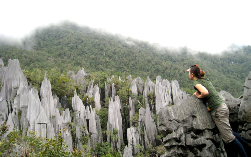 姆魯山國家公園成立於1974年,被联合国教科文组织列为世界遗产。其中包括了砂拉越第二高峰姆魯山(海拔 2.376公尺)。 姆魯岩洞是世界上最大,最壯觀的鐘乳石岩洞之一,是婆罗洲岛上的一颗明珠。1985年正式對外開放後,多采多姿的自然生態以及荒蕪粗獷的風貌使它成為砂勞越最負盛名的景點之一。公園內除了沙岩與頁岩,兩側還夾生著石灰岩,較低山區為原始熱帶森林所遮蔽,而山峰上則遍佈高山區植物,是游客进行野外活动,攀山,寻幽探秘及考古的好去处。姆鲁山国家公园以天然洞穴闻名,大自然在这里留下了150万年前冰河时期的生物化石,目前共开放4个岩洞穴,包括鹿洞,兰洞,风洞及清水洞。洞内有壮观的钟乳石,其中鬼斧神工般的自然景观和色彩,直教人惊叹不已。其中最吸引人的是名為"火焰山"(Gunung Api)山谷中壯麗的岩石尖峰群又称石林(Pinnacles)。