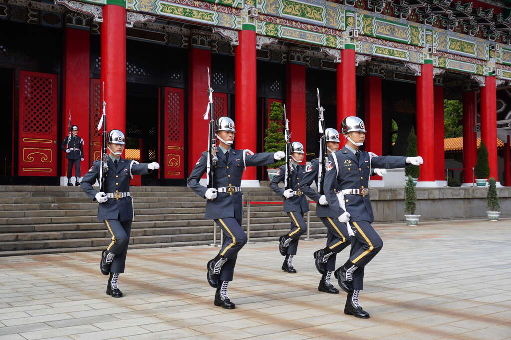 忠烈祠~紀念為國犧牲的烈士,大門前站崗的衛兵交接換哨表演耍槍,吸引遊客駐足觀看,蔚為特色。